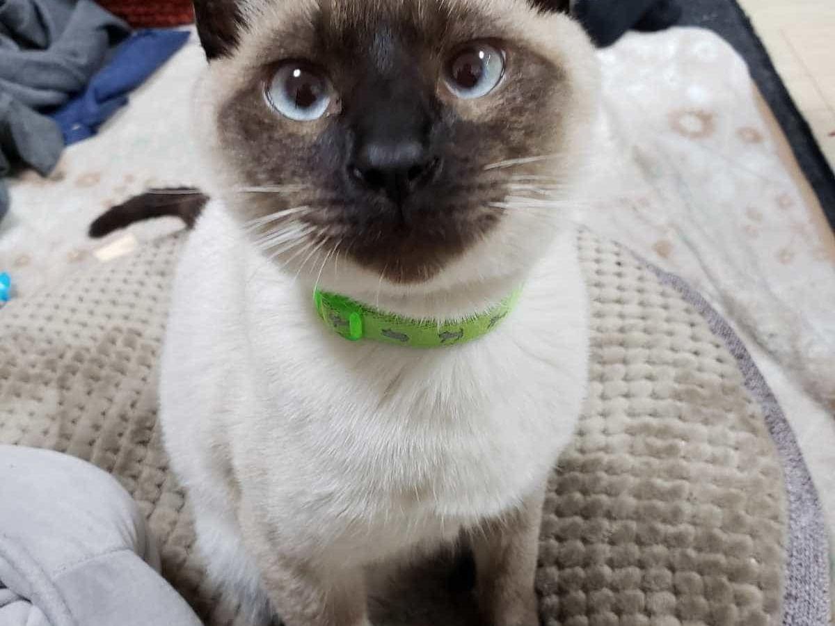 緑の首輪をした、顔が茶色い猫を探してます