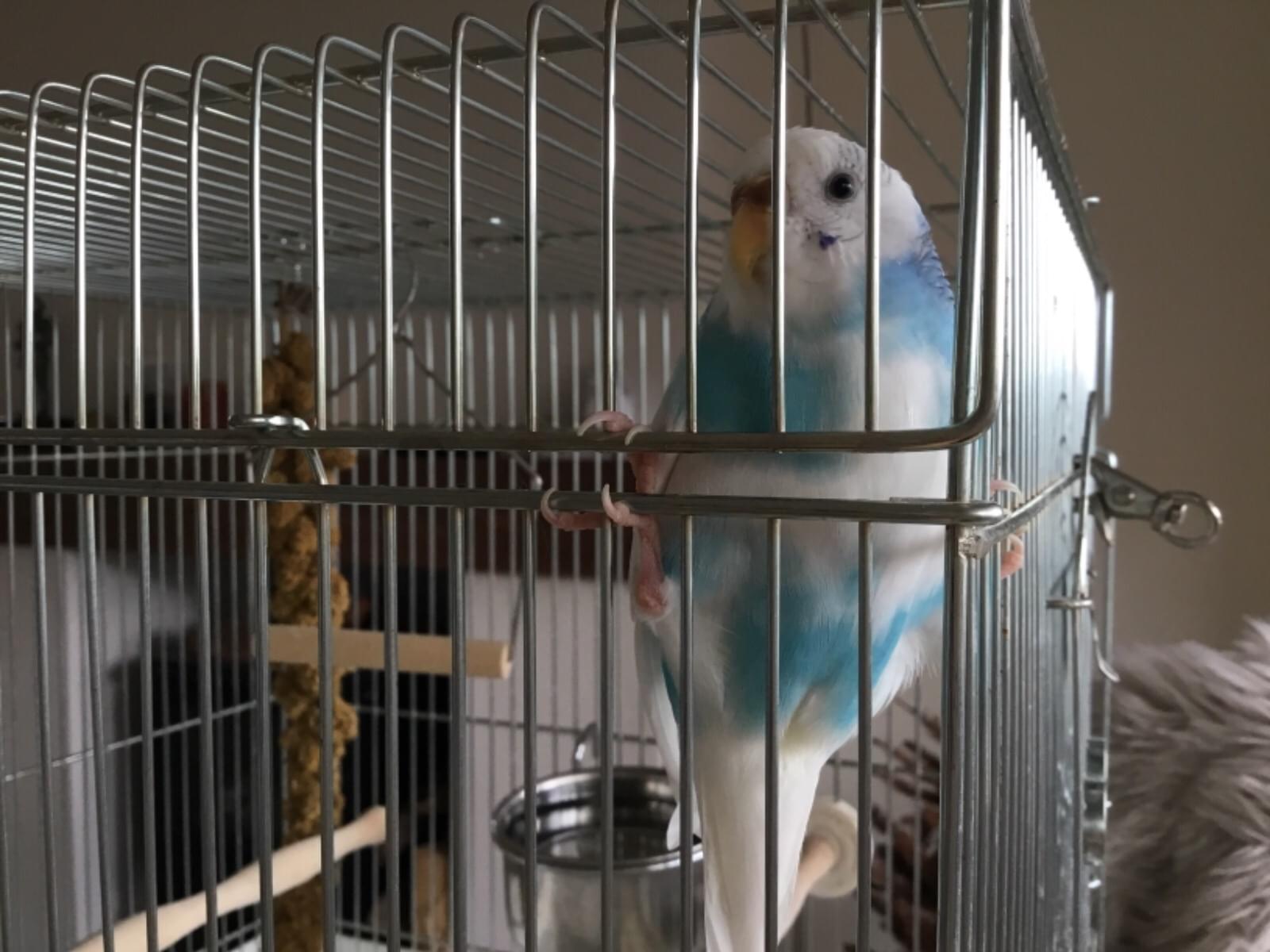 江東区辰巳で白と水色のセキセイが保護されてます。