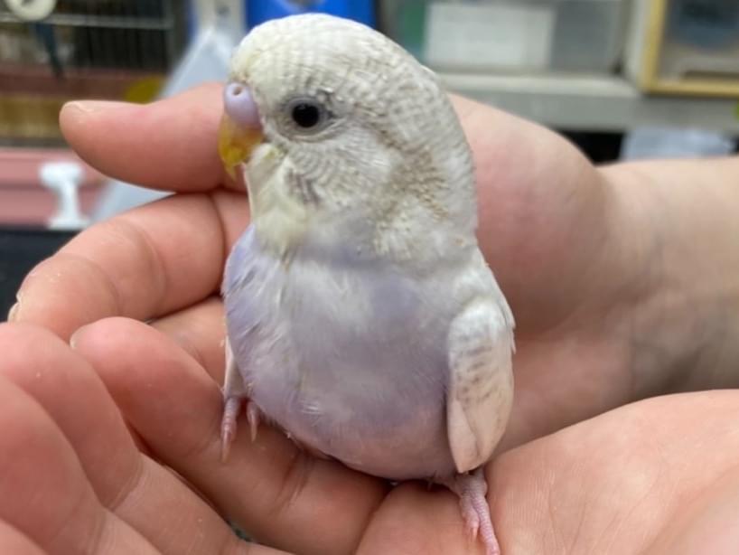 ライラックのセキセイインコが迷子になりました。ピー助と良く喋ります。右足の指が丸まってるのが特徴です