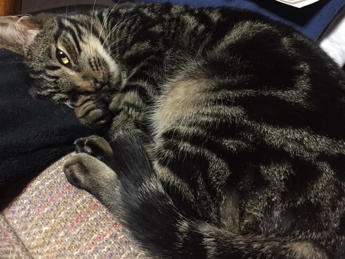 手術痕のある黒キジトラ猫を探しています