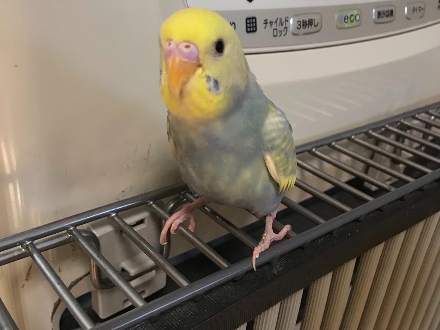 最近飛べるようになったレインボーという種類のインコです。黄色水色白が混ざった色で人懐っこいです