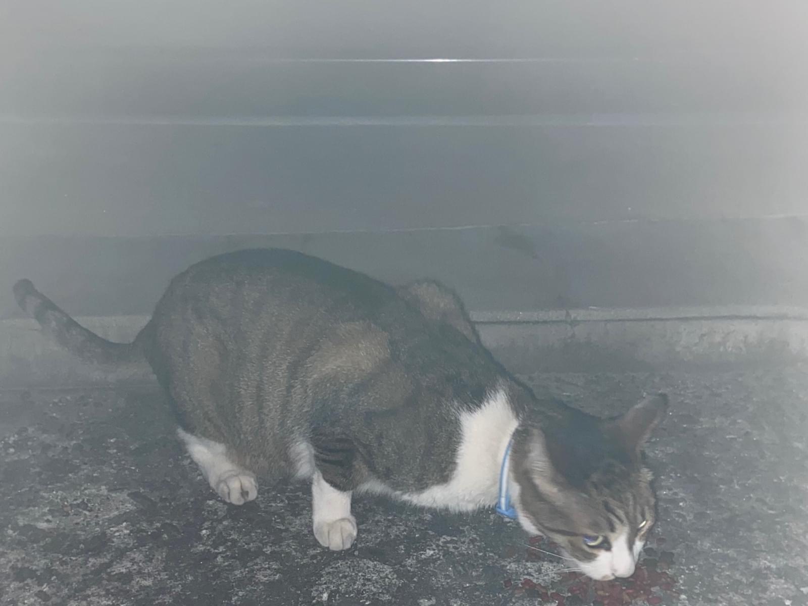水色か青色の首輪している サバシロ?サバトラ?柄