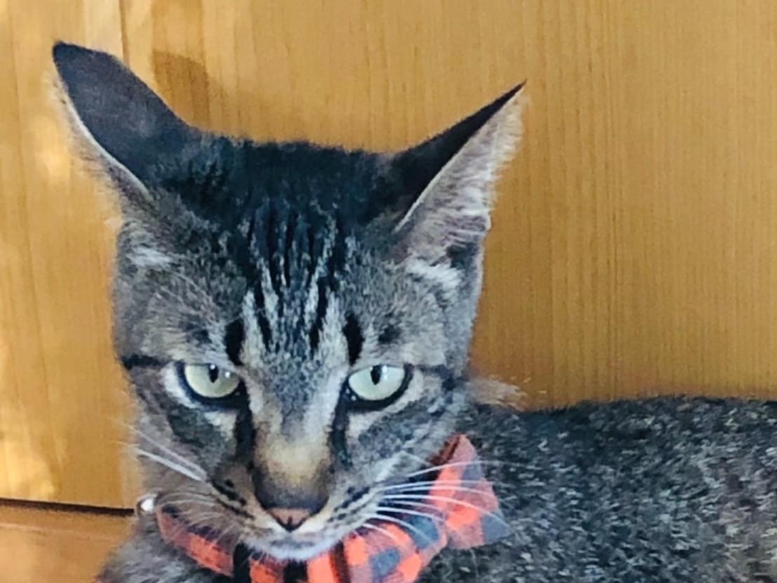 去勢済み。雄猫4歳です。少しビビり。しっぽの先っぽ触ると若干曲がっており、右耳の先もほんの少しだけ折れています。行方不明時、首輪はしていませんでした。マイクロチップもなしです。体重4.5kg。大柄ですが太っているといった感じではなく細長いです。