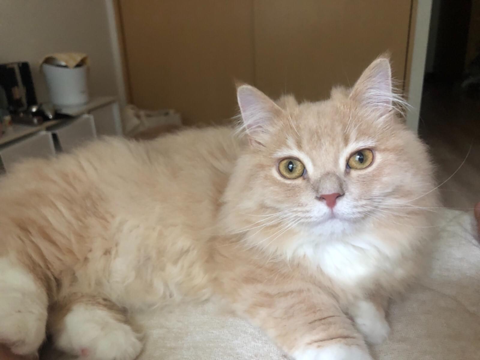 自宅の窓よりマンチカン(短足)が逃げてしまいました。毛色は白よりのベージュ、長毛種で全身サマーカット、尻尾と顔のみ毛が長くなっております。今はカット部分も伸びてるかと思います。首輪、マイクロチップなしです。