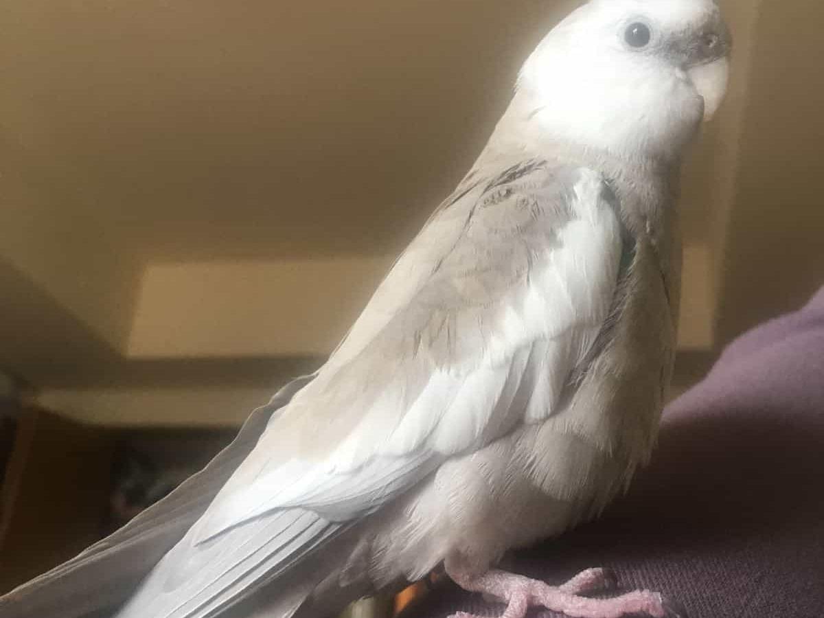 オカメインコのホワイトフェースシナモンなので、頭が白く、体が薄い茶色です。15ヶ月の誕生日は5月11日で、その日までに会いたくたまりません。オスです。
