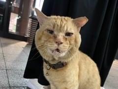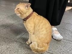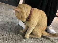 赤い首輪をした人懐こい茶トラの男の子