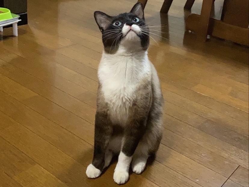 特徴⇒口の周りは白く、それ以外の顔は黒いです。体はグレーです。胴が長く、スラッとしています。4本足全てに白い靴下を履いているような模様があります。