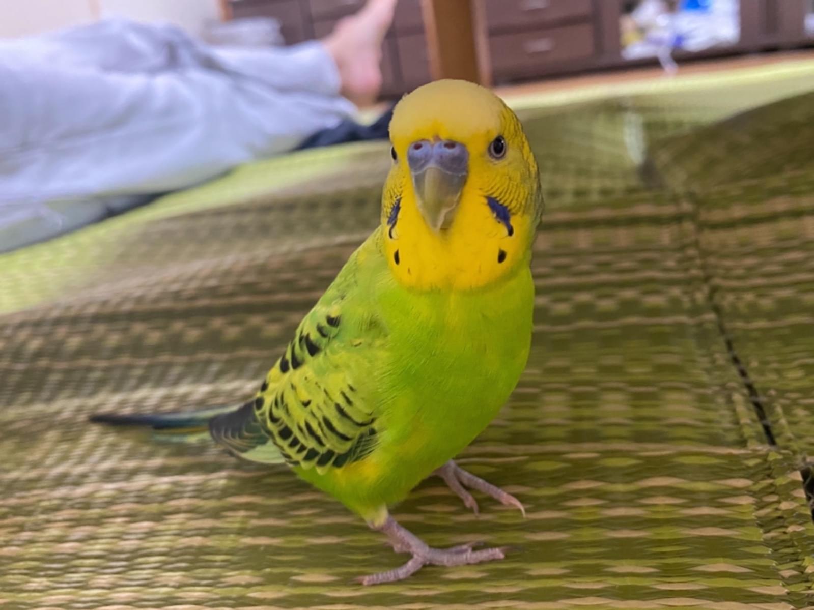 頭は黄色、体は緑です。爪が黒くなっているところがあります。
