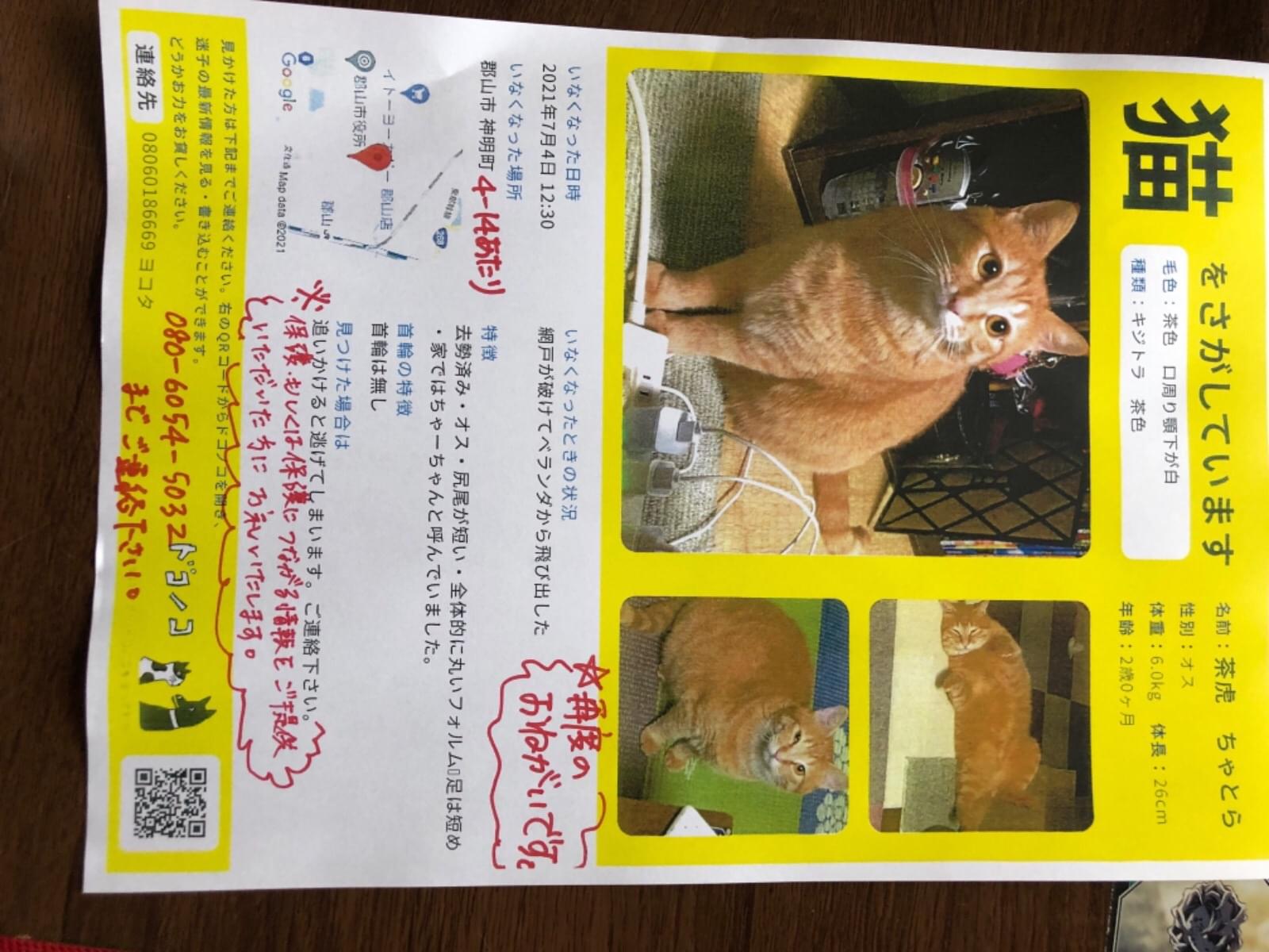 ちゃーちゃんと呼んでます。追いかけると逃げてしまうはず、どんな些細な情報でも構いません。