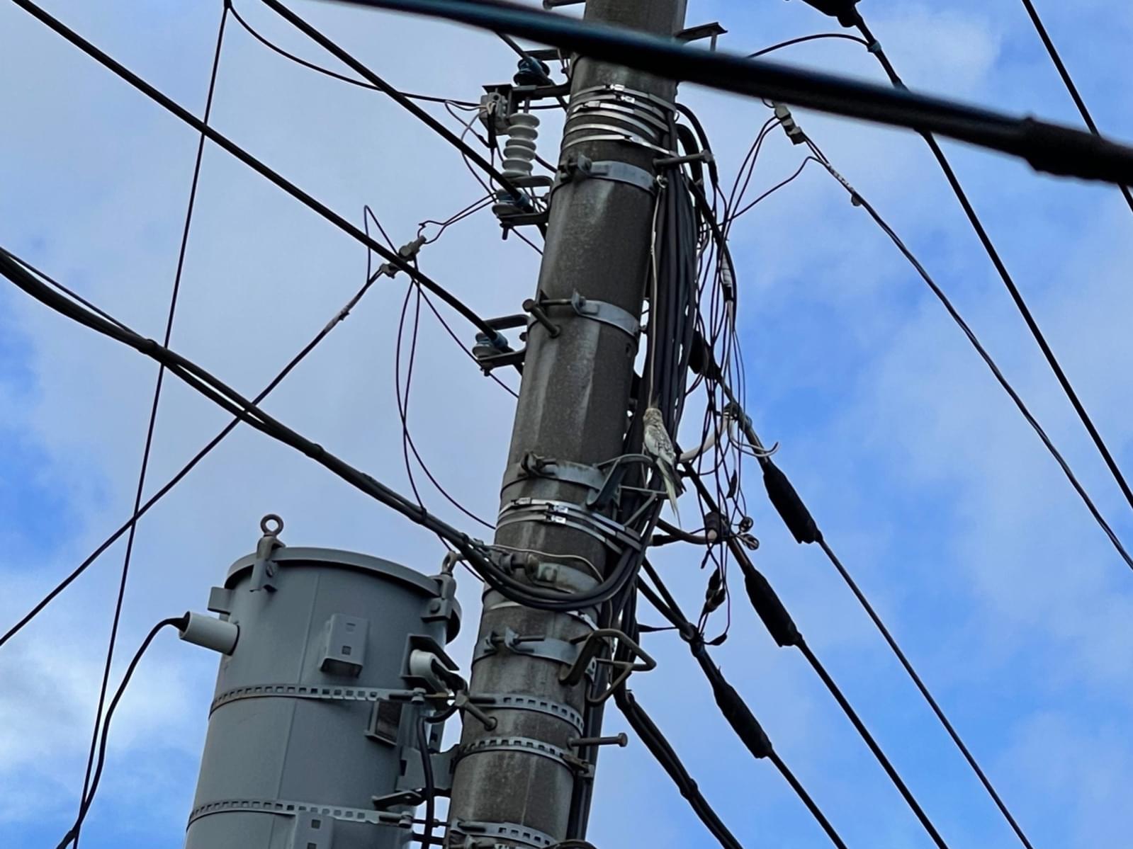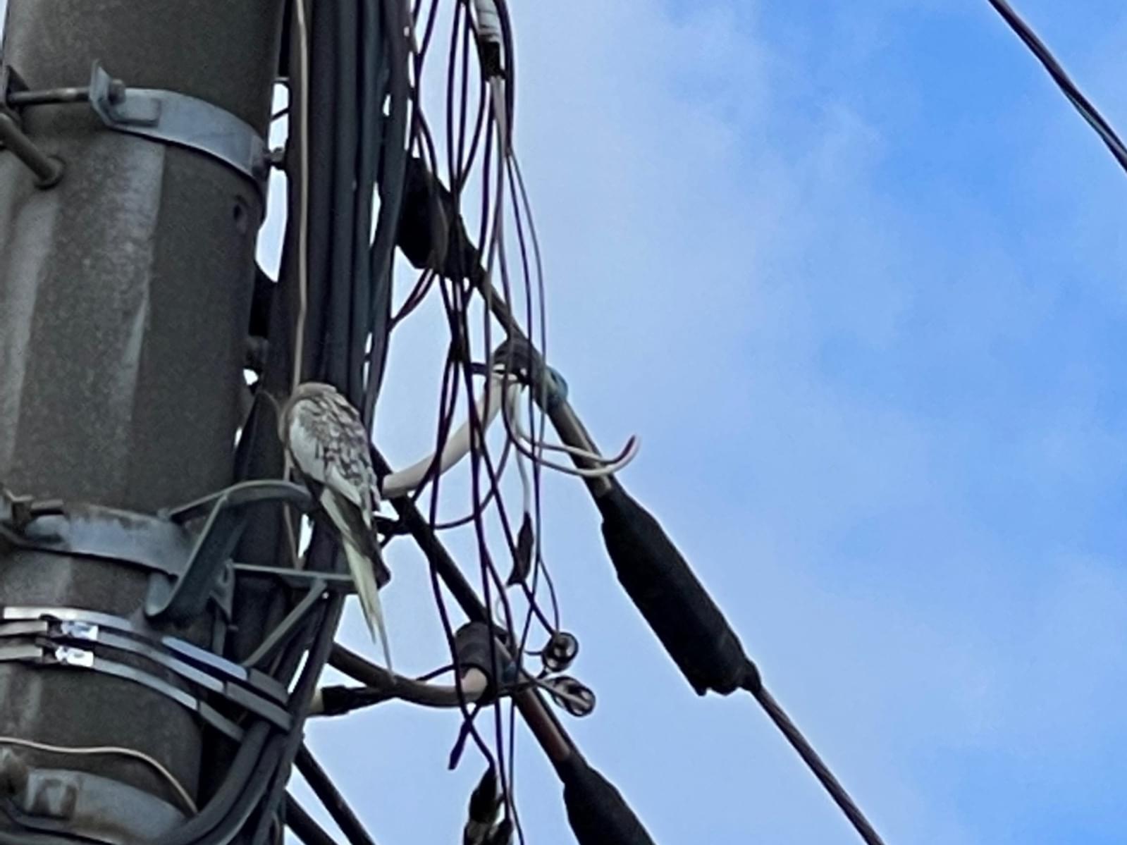今朝、電柱にとまってずっと鳴いている