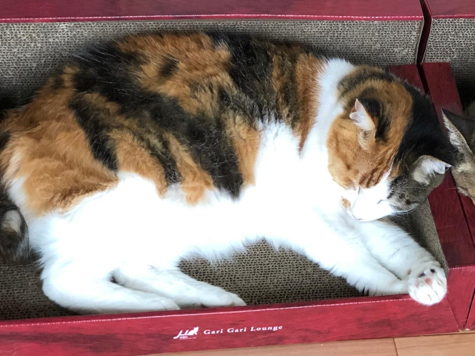 人間の言葉を話す猫ちゃんです。食欲にむらがありますが缶詰が大好きで、何か有ると言葉で訴えてきます。三毛色が綺麗に出ていて上品な感じの猫ちゃんです。