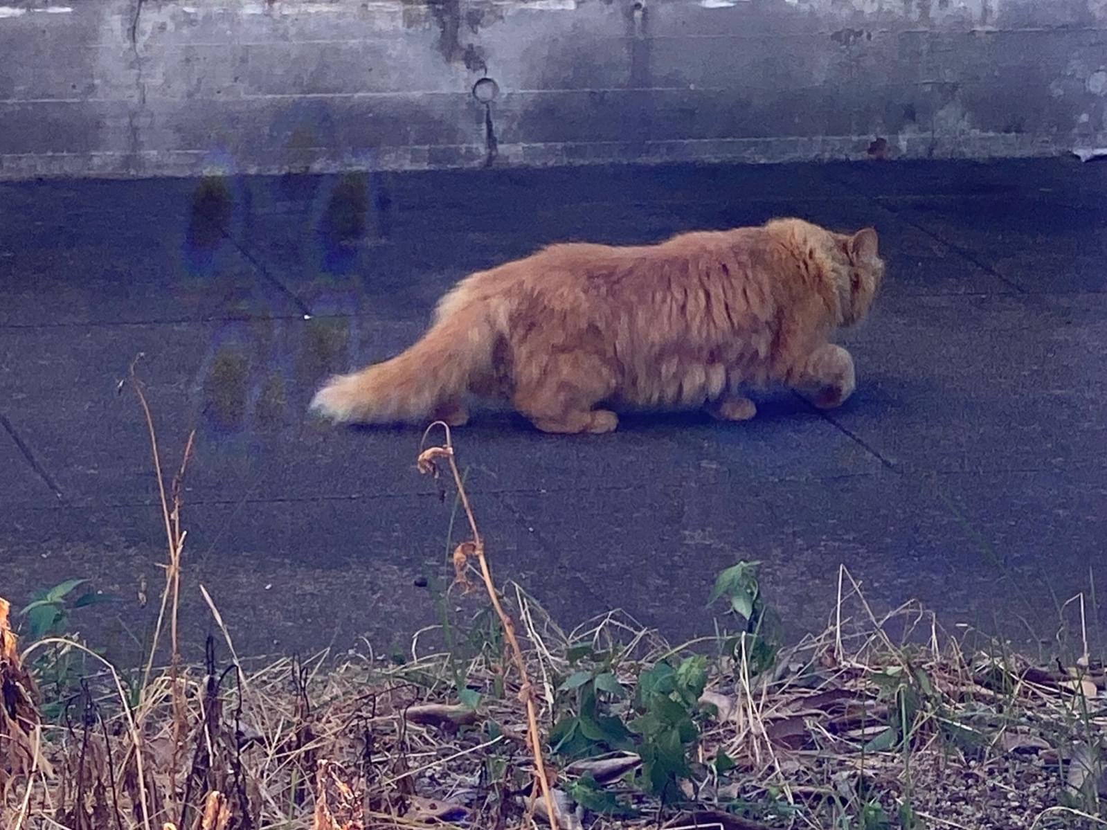 フワフワの茶トラ長毛、とてもビクビクしていました