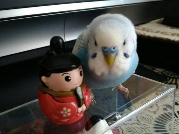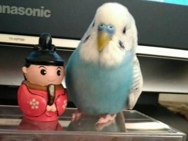 セキセイインコで白と水色です、羽先がうっすらグレーです。