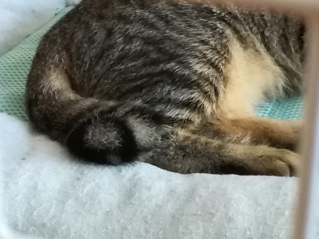 キジトラ鼻頭に黒い縦線しっぽ先だんご形