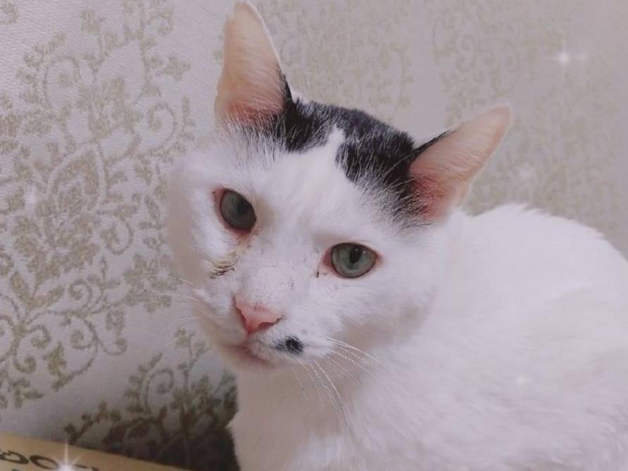 - 白地で、頭がセンター分けの髪に似た形で黒色、尻尾も黒色です。
