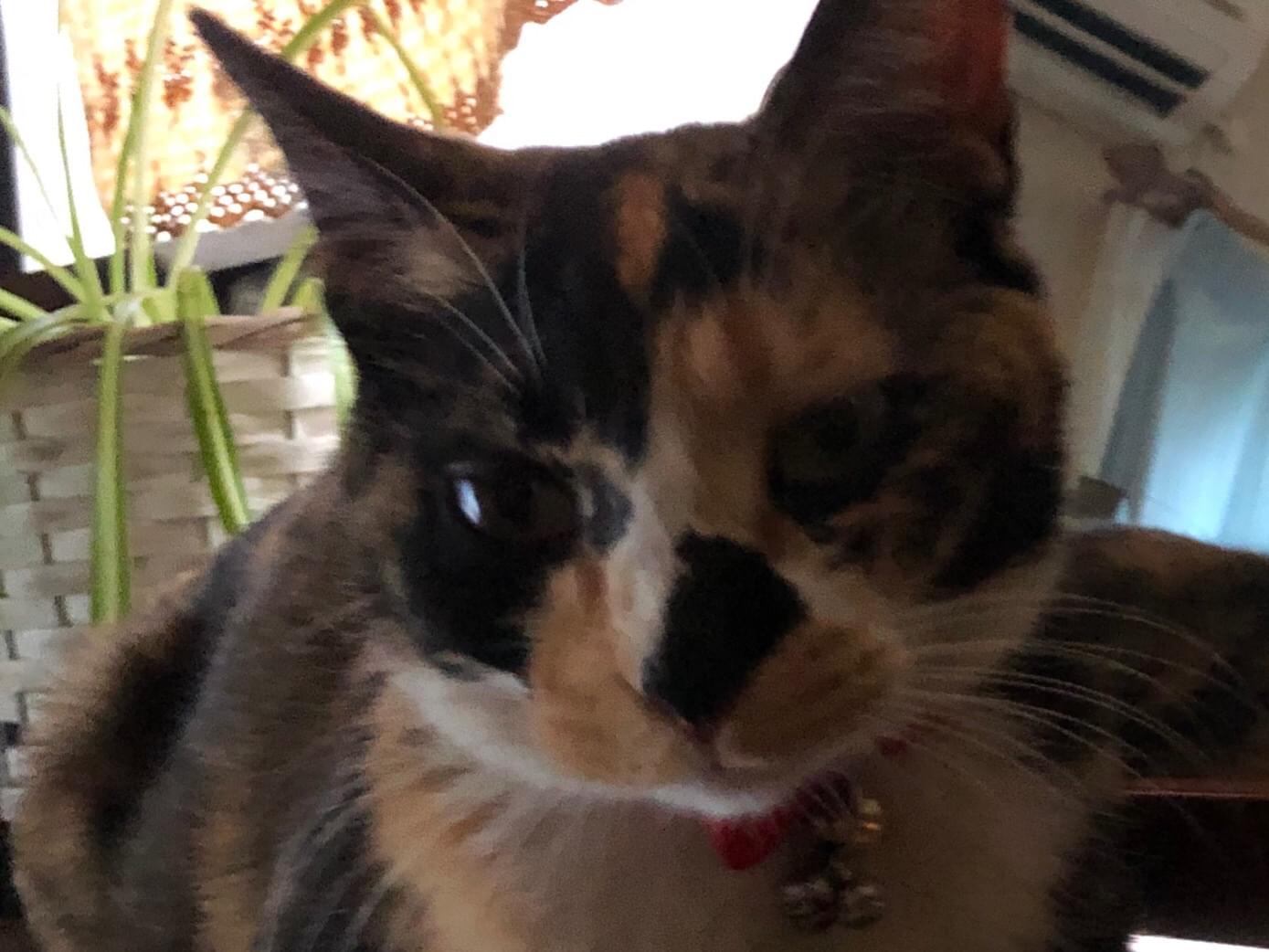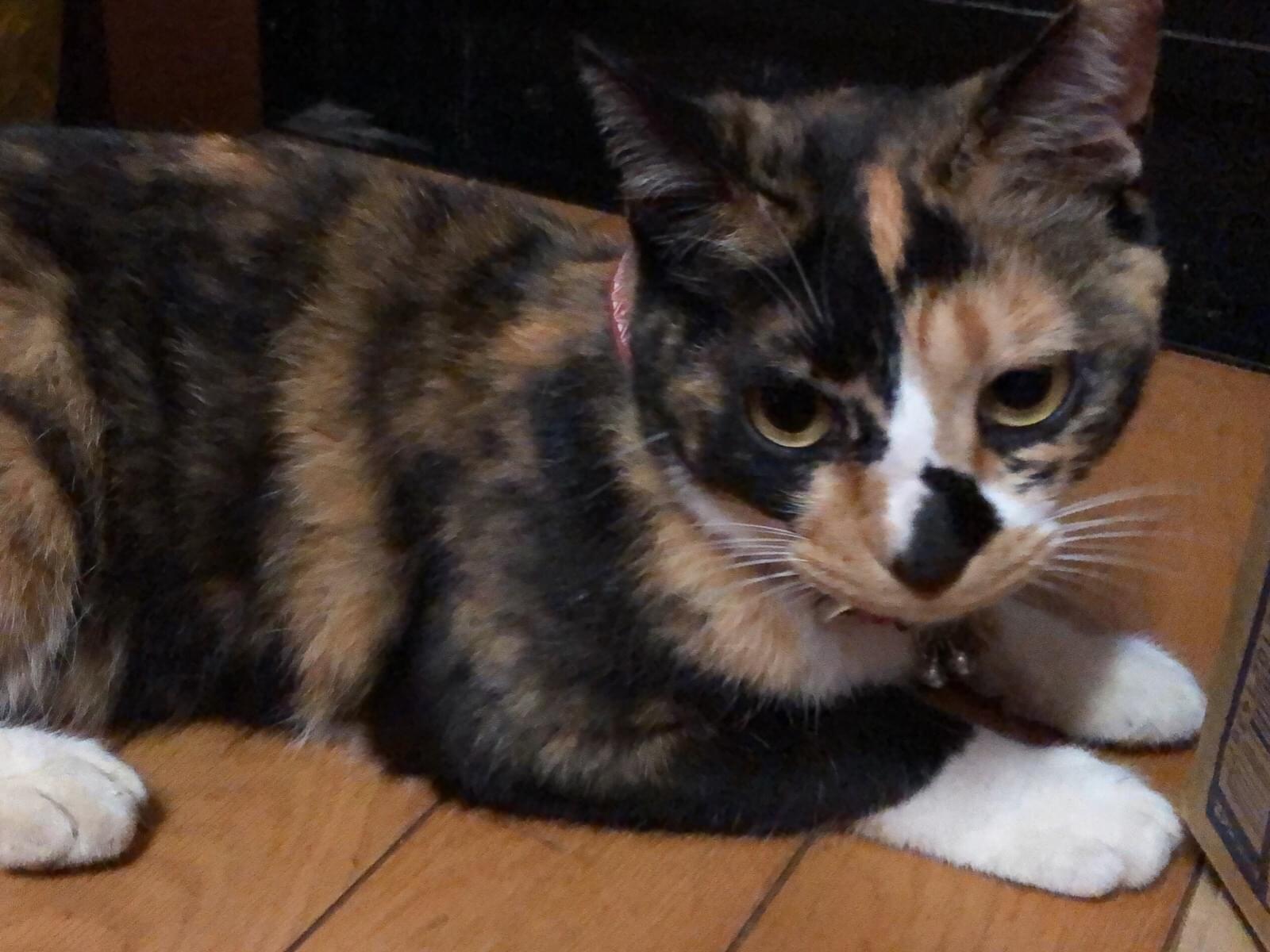 左耳に桜カットがあり、しっぽは先が若干曲がっていて鍵しっぽです。