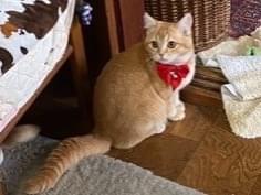背中が茶色の無地の猫(尻尾と手足は模様あり、お腹の当たりは白色)です。