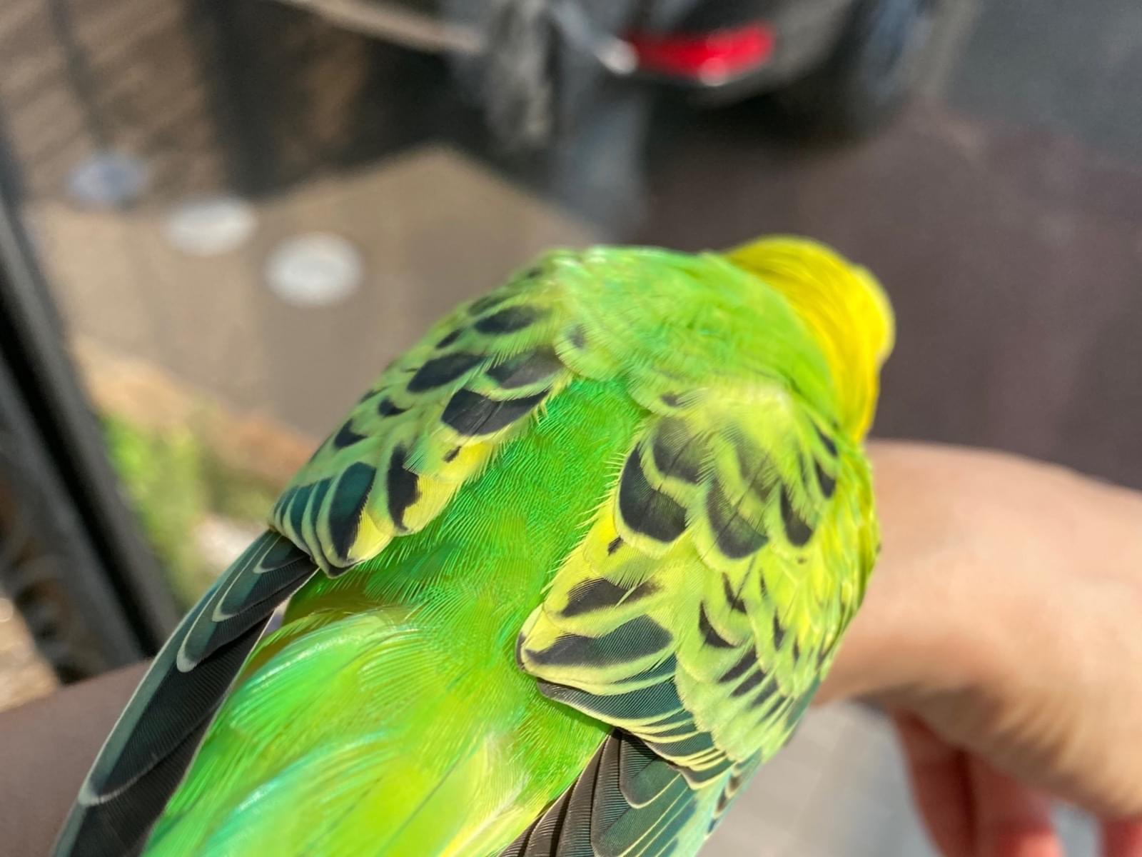 お向かいの車のワイパーに止まって居ました。頭が黄色、体は緑のとても人慣れしたセキセイインコです。手に止まると指の皮を突いていました。水を飲み、シードも勢いよく食べていたのでお腹が空いて居た様です。見たところケガも無く、体も足も綺麗でした。逃げ出してから、そんなに時間は経って無い様に見えました。札幌も朝晩は冷える日が来ますので、一刻も早く飼い主様の元へ戻れますよう願っております。昨日、警察に連絡し、保護されています。