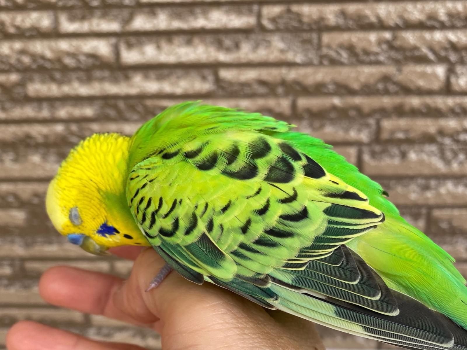 黄色と緑の人慣れしたセキセイインコを保護しました