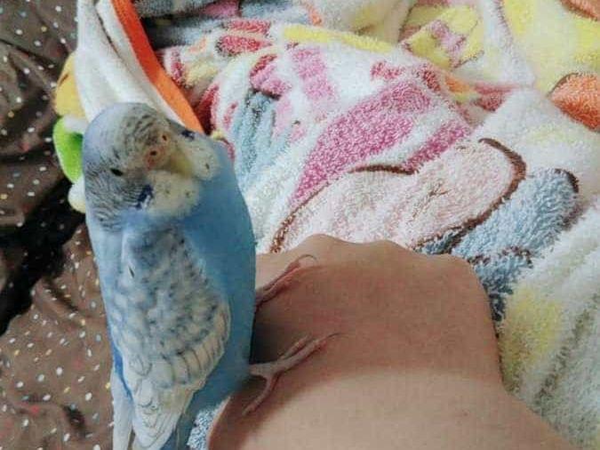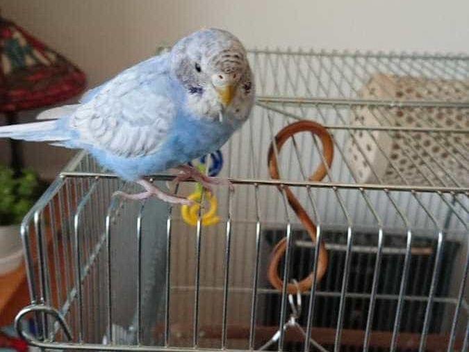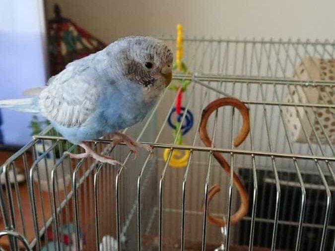 青と白のセキセイインコです。