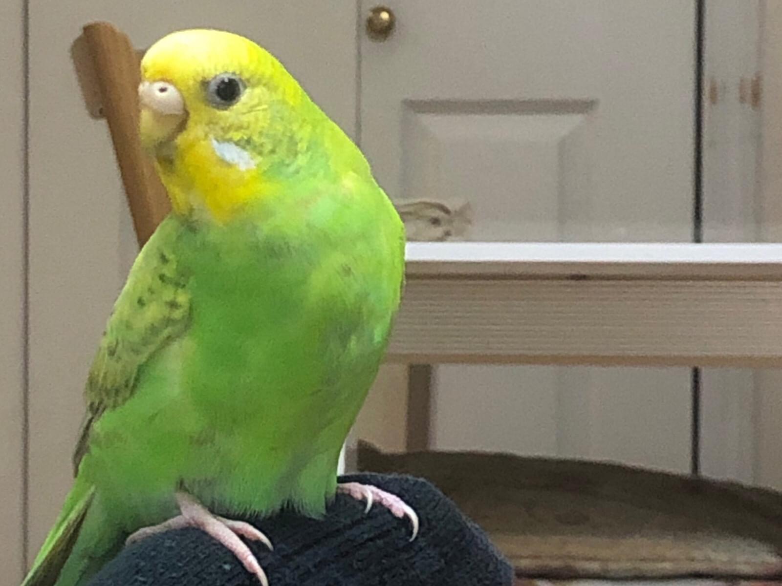 体を触られるのは苦手ですが、よく頭や肩に乗ってきます。声は高めで頭が黄色くて、体が緑の色が明るめのインコです。