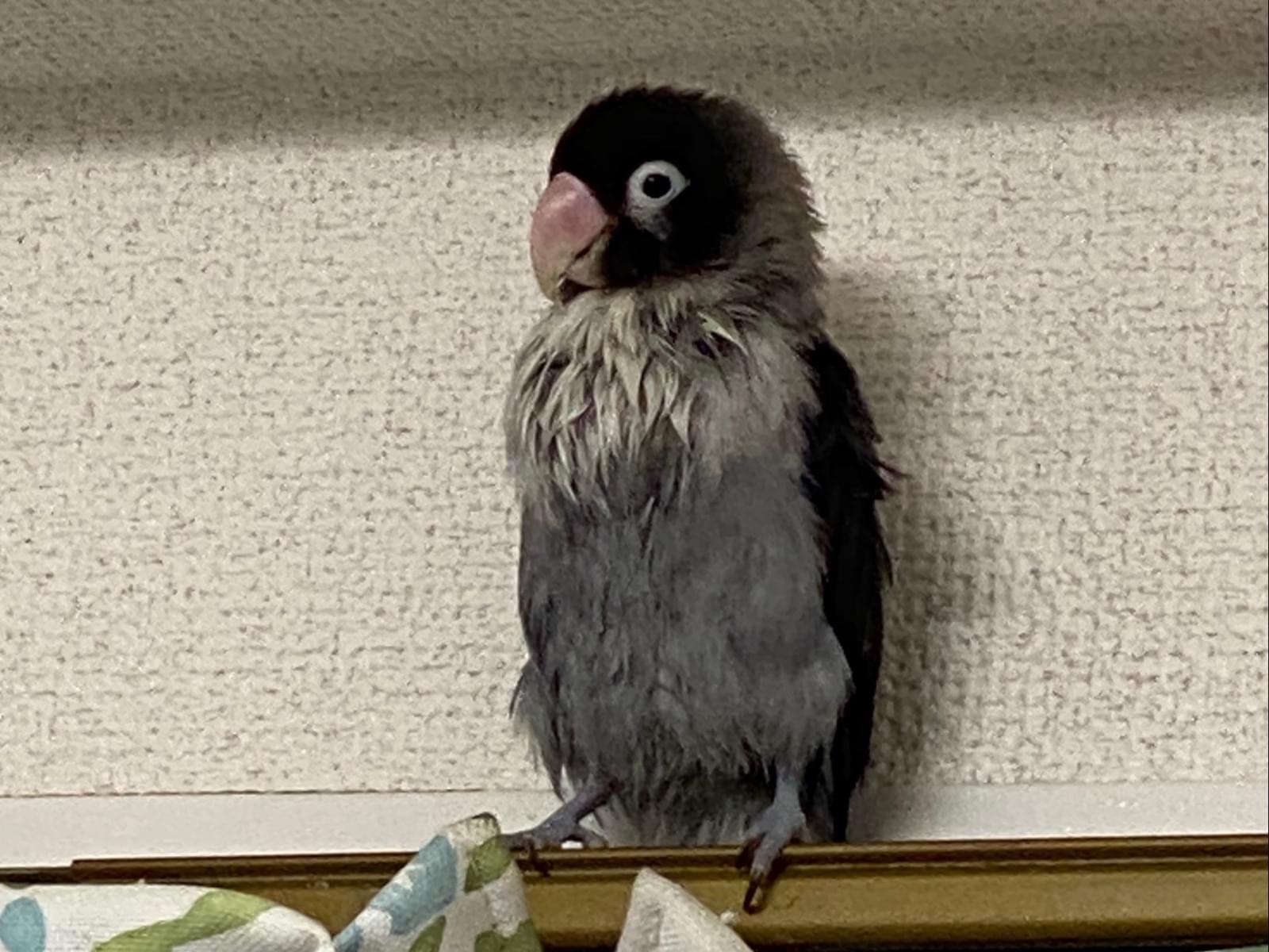 8月27日朝8時にベランダから飛び立ってしまいました。ボタンインコ モーブ 色、顔が黒色目のリングが白、嘴がピンク色、羽や胸の色が黒グレー白色が入っています。女の子です。