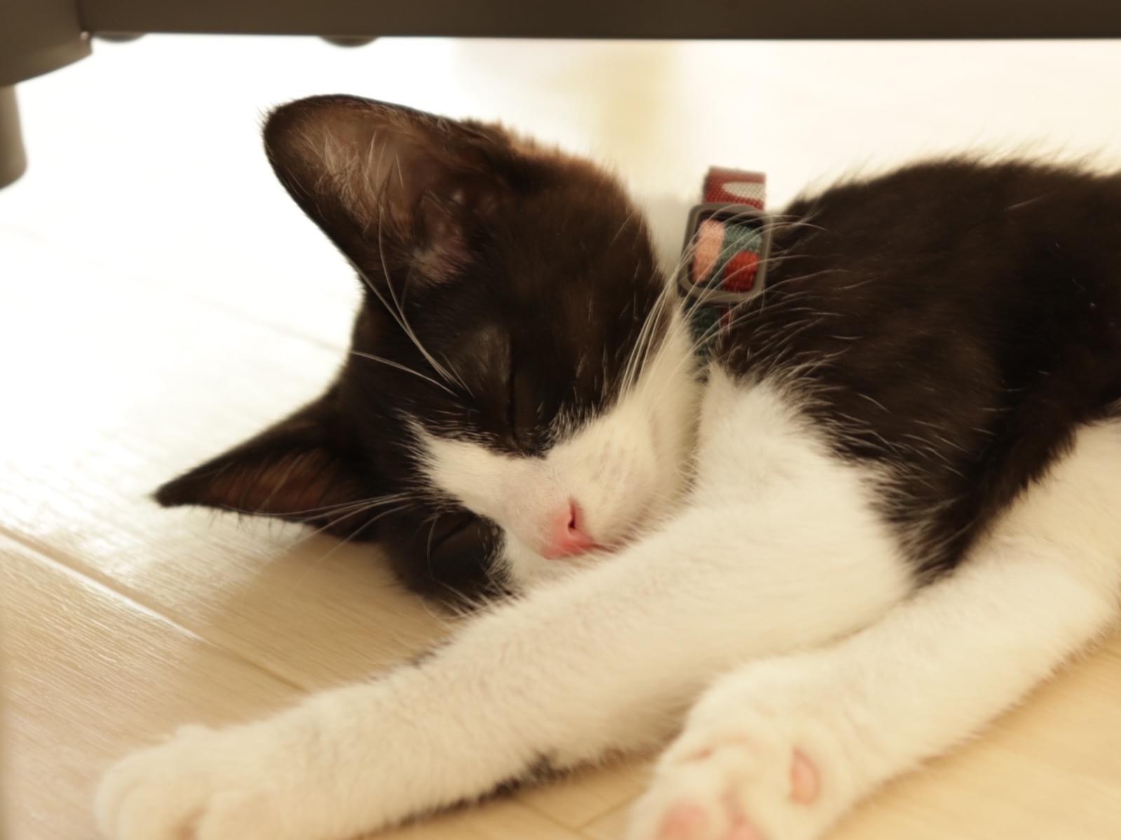 首輪をしています。(若干緩かったので取れてるかもしれません)(少ししか見えませんが写真と同じ色の首輪です)