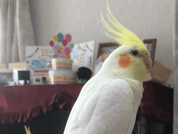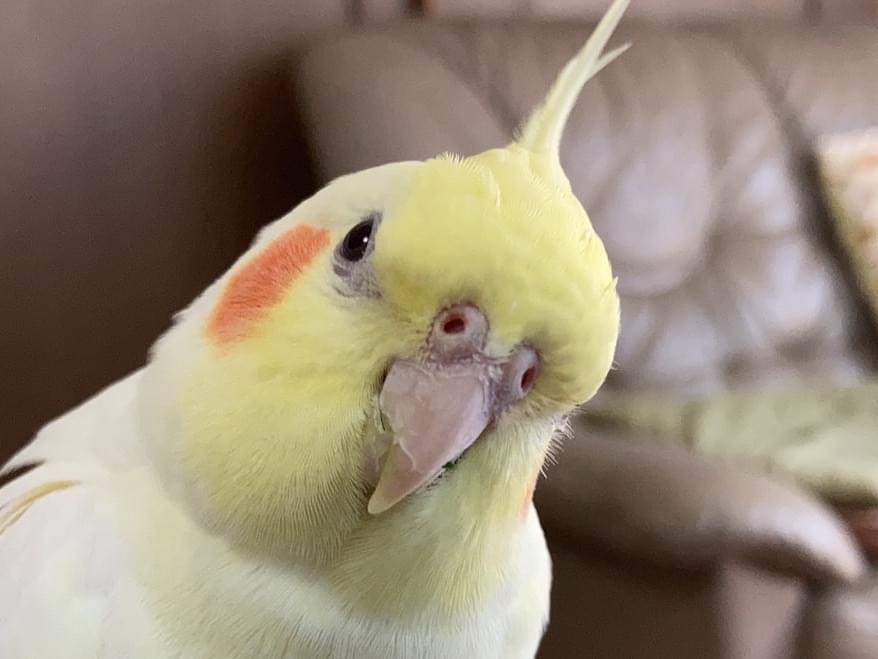 黄色のオカメインコ 、お尻に黒のペンのインク付いています。