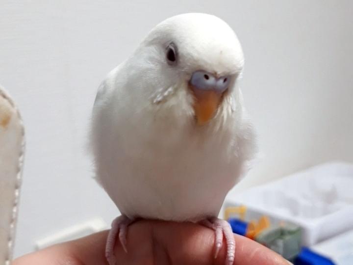 目の赤い白いセキセイインコ(アルビノ)ルビ